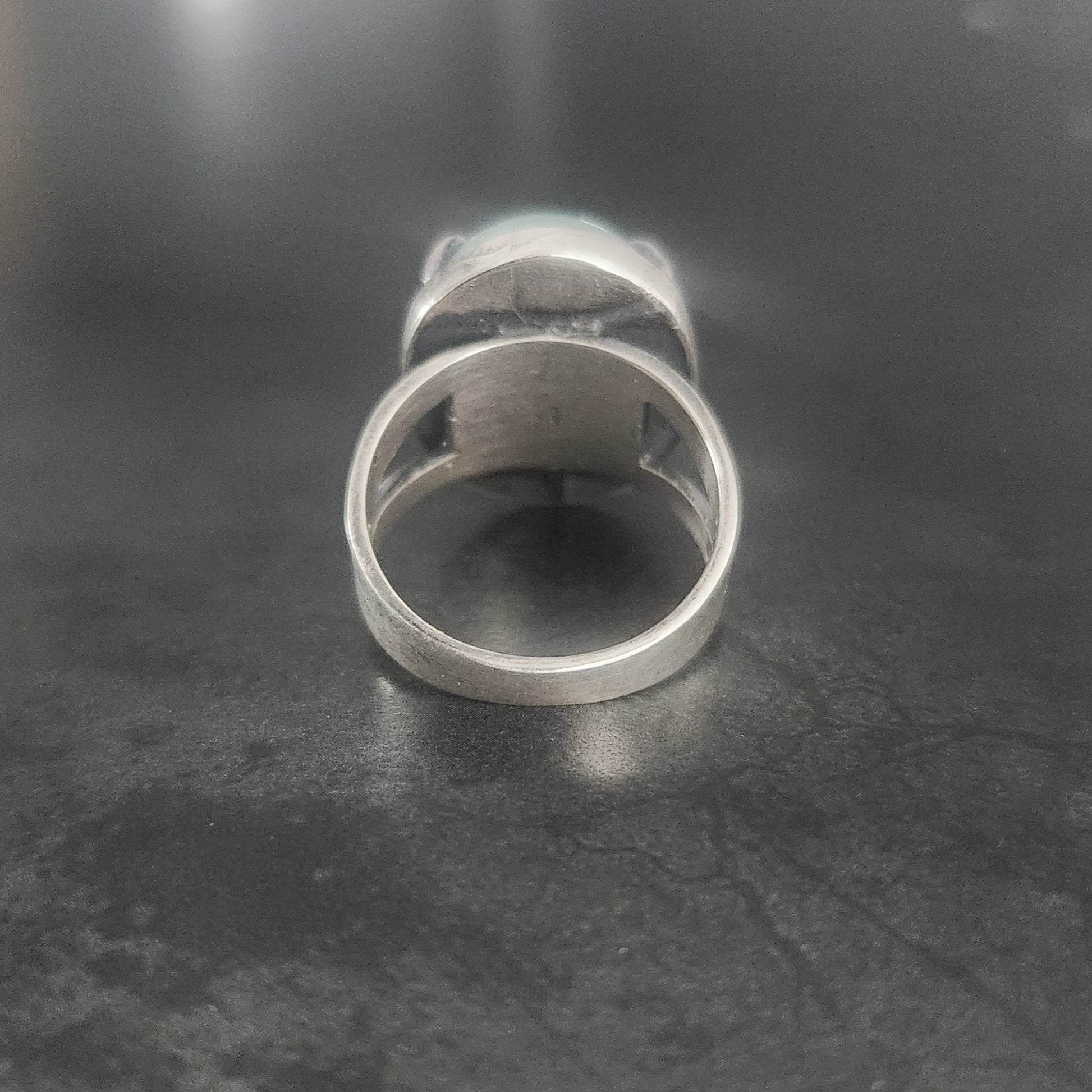 The oval gem measures 15 mm x 20 mm and it set in a simple but edgy setting. The ring is wide and sturdy.