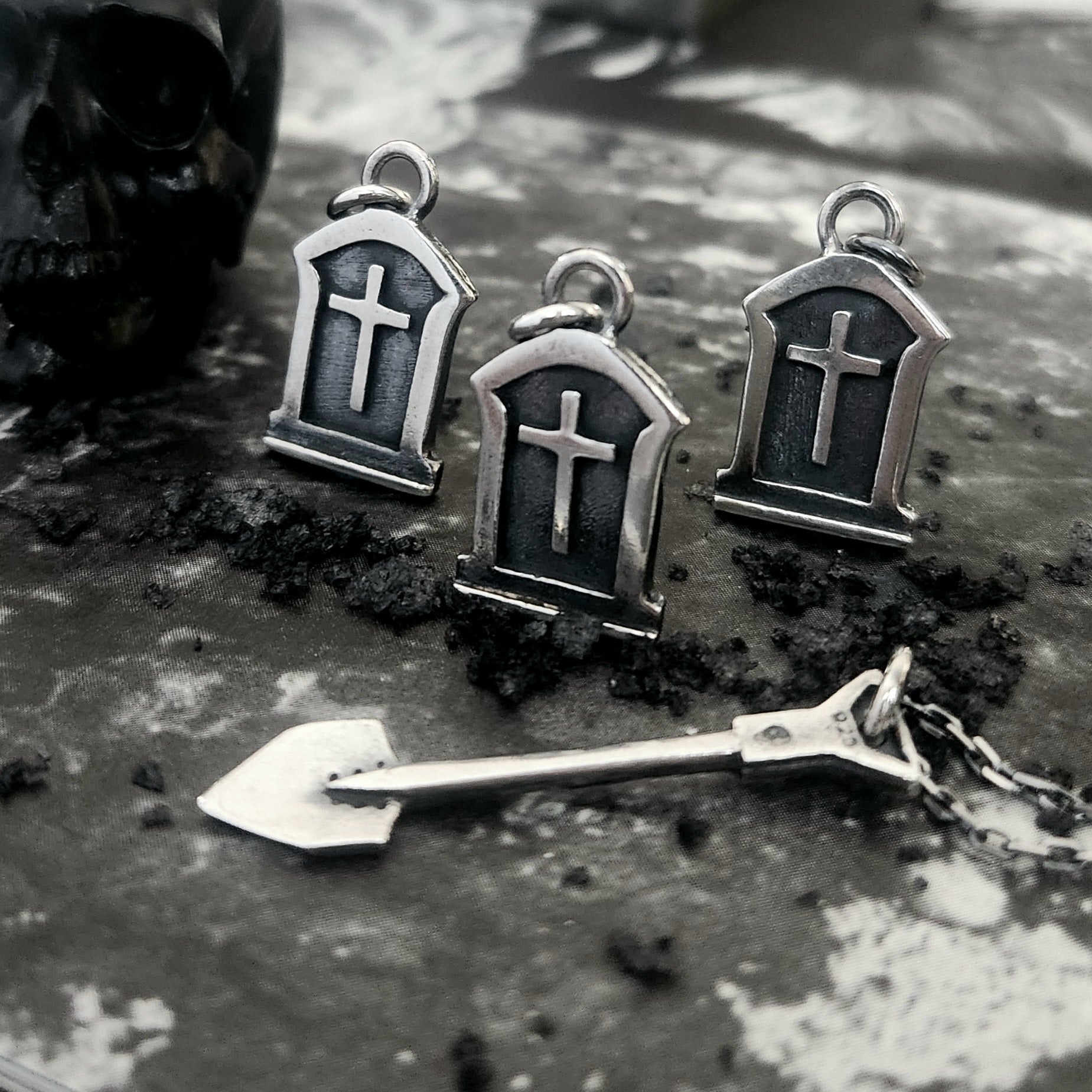 The miniature shovel pendant measures 1.5" long and hangs on an anchor chain.